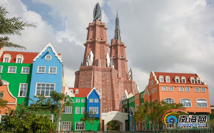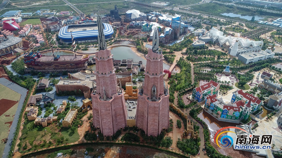 遠遠望去,長影海南“環球100”電影主題樂園像個童話的世界。海報全媒體中心記者袁琛 攝