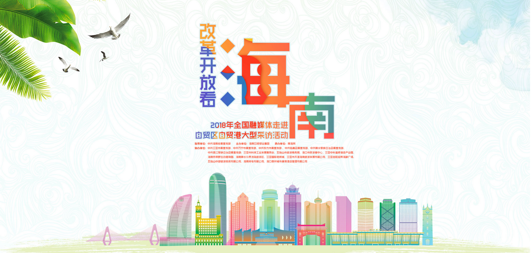 本次活動活動由中共海南省委宣傳部指導,海南日報報業集團主辦,南海網承辦,中共三亞市委宣傳部、中共萬寧市委宣傳部、中共東方市委宣傳部、中共臨高縣委宣傳部、中共陵水黎族自治縣委宣傳部、中共昌江黎族自治縣委宣傳部;三亞市科技工業發展委員會、五指山市旅游商務局、海口市民游客中心、三亞中科遙感信息產業園、海南熱帶野生動植物園、海南分界洲島旅游區、三亞國際免稅城、三亞市天涯海角旅游發展有限公司、三亞吉陽迎賓海鮮廣場、五指山中部旅游投資有限公司、海南核電有限公司、海南森林城市酒店等聯合協辦。