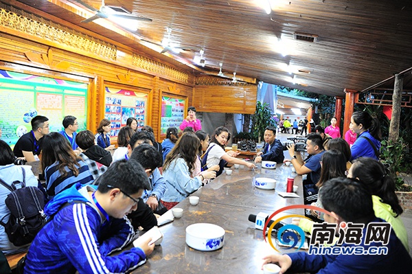 11月25日,“改革開放看海南”2018年全國融媒體海南行采訪團在興隆熱帶植物園品嘗咖啡。南海網記者沙曉峰攝