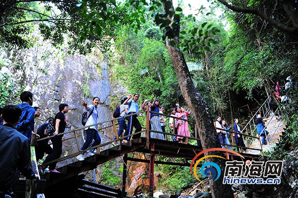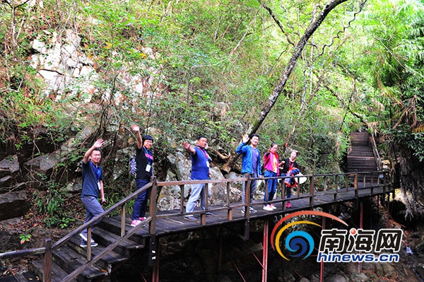 “改革開放看海南”2018年全國(guó)融媒體海南行采訪團(tuán)在霸王嶺國(guó)家森林公園采風(fēng)。南海網(wǎng)記者沙曉峰攝