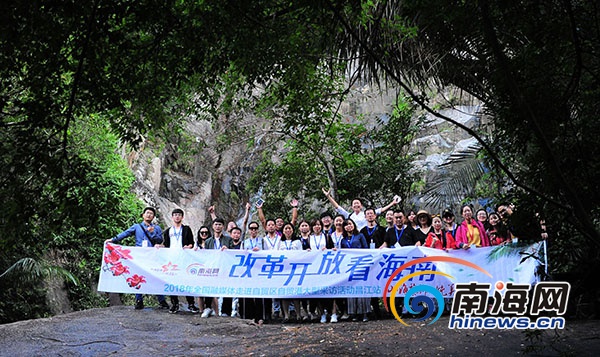 “改革開放看海南”2018年全國(guó)融媒體海南行采訪團(tuán)在霸王嶺國(guó)家森林公園合影留念。南海網(wǎng)記者沙曉峰攝