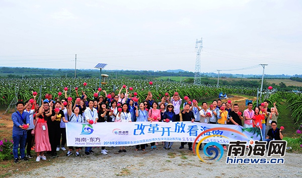 11月29日,網(wǎng)媒記者在火龍果基地合影留念。南海網(wǎng)記者沙曉峰 攝