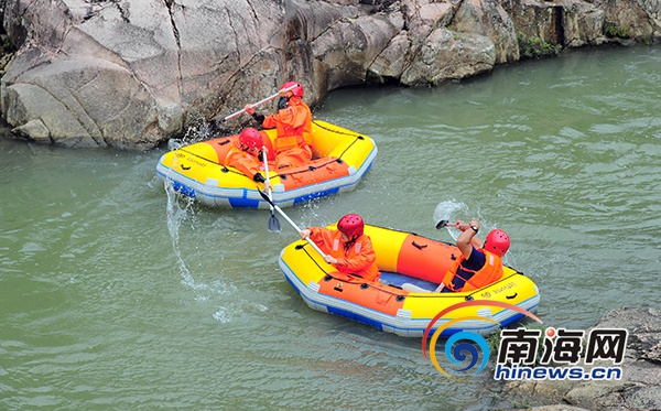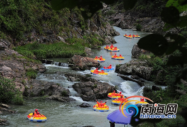 “改革開(kāi)放看海南”2018年全國(guó)融媒體海南行大型采訪團(tuán)在五指山市紅峽谷體驗(yàn)漂流。南海網(wǎng)記者沙曉峰攝