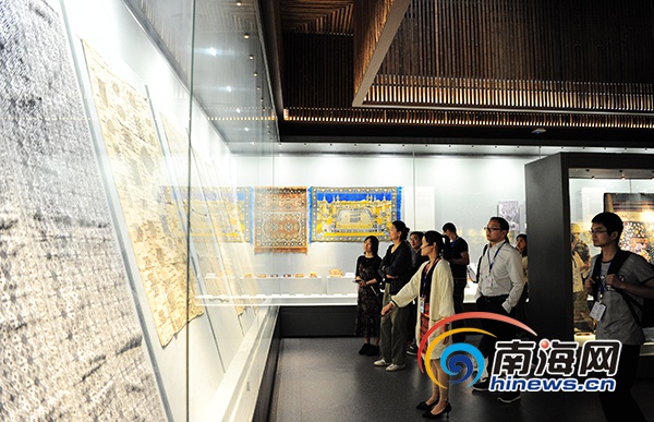 “改革開(kāi)放看海南”2018年全國(guó)融媒體海南行大型采訪團(tuán)在海南省民族博物館參觀。南海網(wǎng)記者沙曉峰攝