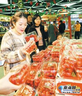?上海市民在盒馬鮮生超市選購陵水圣女果。