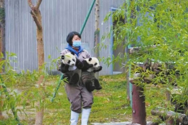 兩只大熊貓之前在中國大熊貓保護研究中心天臺山野化培訓圈接受了系統(tǒng)的野化訓練,前幾日工作人員對它們進行了回捕。