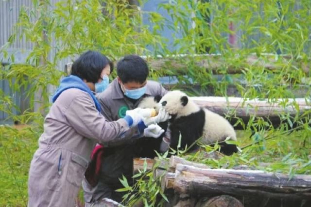 檢查結(jié)果顯示,大熊貓“琴心”體重達64公斤,體長117厘米;大熊貓“小核桃”體重62公斤,體長99厘米,兩只大熊貓生長發(fā)育及各項生理指標均正常。