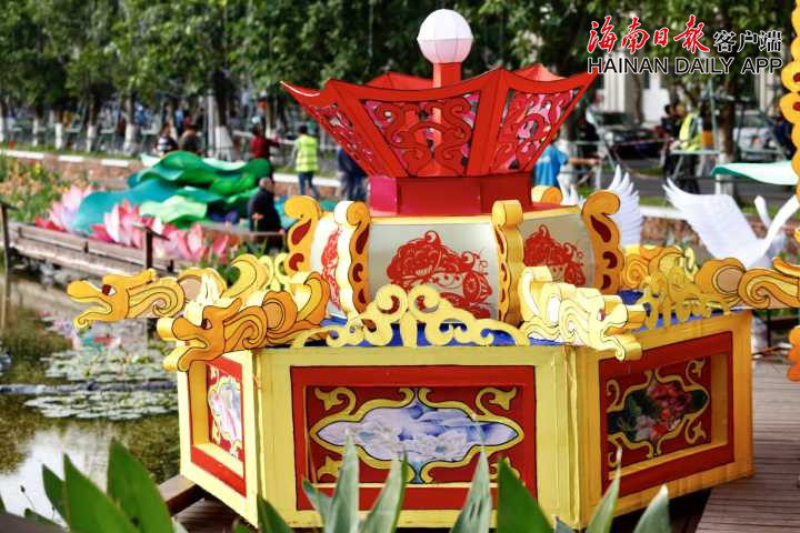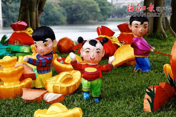 花燈造型共有十幾種,有卡通人物、蓮花、生肖豬、年年有魚等,顏色鮮亮,格外引人注目。據海南日報客戶端記者陳若龍 攝