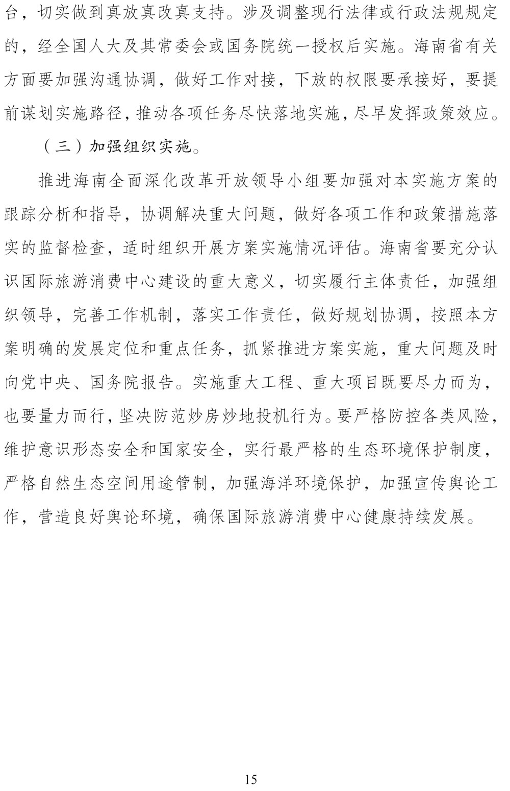國家發展改革委關于印發《海南省建設國際旅游消費中心的實施方案》的通知