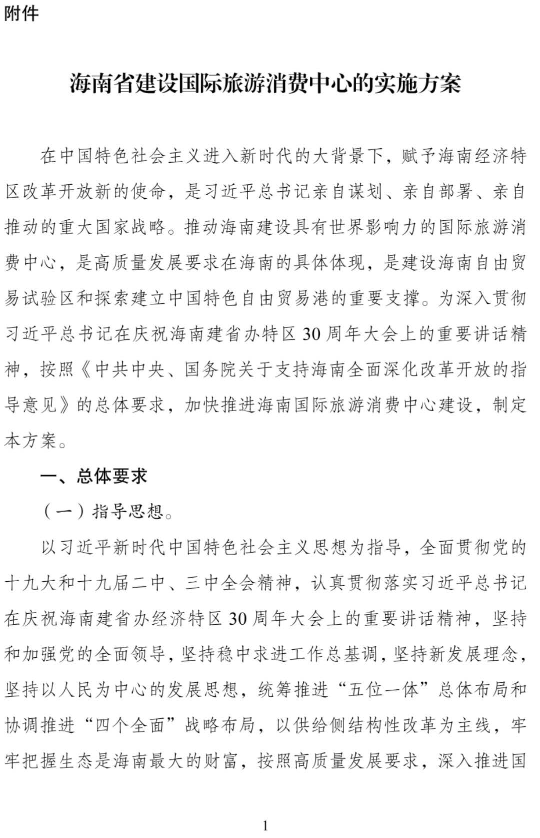 附件:《海南省建設國際旅游消費中心的實施方案》
