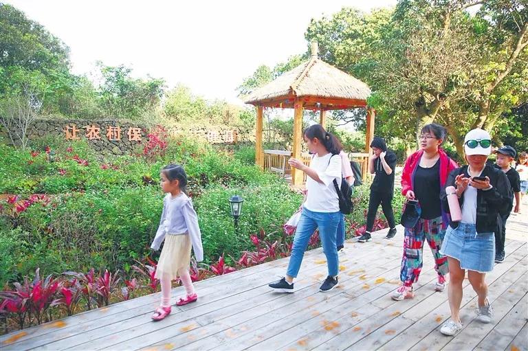 ↑游客在海口市永興鎮體驗鄉村游。高林 攝