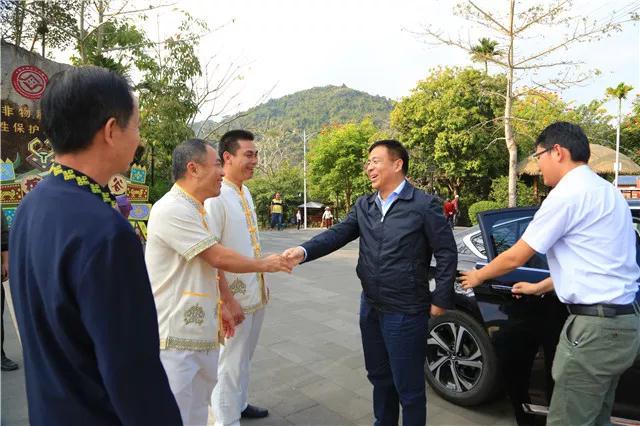 在景區三月三廣場,王昱正書記向保亭縣重點專家(人才)、檳榔谷景區董事長程天富送上鮮花和慰問金,對以程天富同志帶領下的檳榔谷景區,多年來為保亭縣經濟社會發展做出的貢獻表示感謝和認同,并詳細了解了企業的發展思路和2019年的發展規劃。在輕松愉悅的氣氛中,王書記還通過程天富同志向景區職工轉達新春的祝福。
