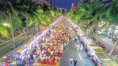 夜幕降臨,華燈初上,海口夜市便開始熱鬧起來。自2017年起,海口對外“求真經(jīng)”對內(nèi)“下苦工”,全力推進特色夜市建設(shè)工作,如今,已打造出一批廣受海口市民和國內(nèi)外游客喜愛的靚麗“名片”。 其中,最有代表性的就是海大南門夜市、金盤夜市、海墾花園夜市、瓊臺福地夜市等。海墾花園夜市大小攤位200余個,匯集了全國各地的佳肴,從南到北、口味大不相同,本地味、川味、西北味、東北味……各種美味小吃讓人應接不暇。海大南門夜市是海口首個試行限時封閉市政道路用于夜市經(jīng)營的項目,這里美食品種極多,除了粥粉面飯等主食類,還有燒烤、炸炸、牛雜以及炒冰、清補涼、海南糖水等甜點。金盤夜市門口的招牌十分氣派,濱海休閑風格的裝潢讓人感到十分舒適,除了海南本地的特色美食外,金盤夜市還有陜西、湖南、內(nèi)蒙古、重慶等外地特色美食,品種十分豐富。瓊臺福地夜市是海口最具有當?shù)靥攸c的夜市,其建筑是結(jié)合府城多年的歷史文化特點進行改造的,是海口美食新坐標之一。試想在這古色生香的地方吃著美味無比的食物,所謂品古城韻味,用各地美食,豈不快哉?