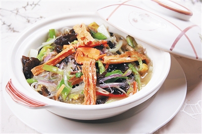 齋菜煲,此菜的美味和經(jīng)典傳承,幾乎可以稱為海口的美食名片。鐘情此菜的內(nèi)地顧客比比皆是,本地人逢年過節(jié)更是少不了齋菜煲。瓊菜泰斗、海南烹飪界“陳師門”掌門人陳中琳介紹說,做地道齋菜煲有11種食材,不能用葷油高湯。如果您吃到的不是這樣,對不起,您可能遇到山寨貨了,請記住這段口訣:甜菜水芹黃豆腐,冬菇發(fā)菜炸腐竹,黑豆芽、黑木耳,蕎頭粉絲金針菇,祭祖拜公最傳神,素油菌湯一鍋煮。