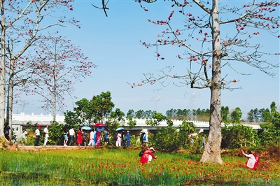 ?、?2月23日,在昌江黎族自治縣七叉鎮,木棉花開得正艷麗,吸引諸多游客前來觀賞。通訊員 邱瑞天 攝