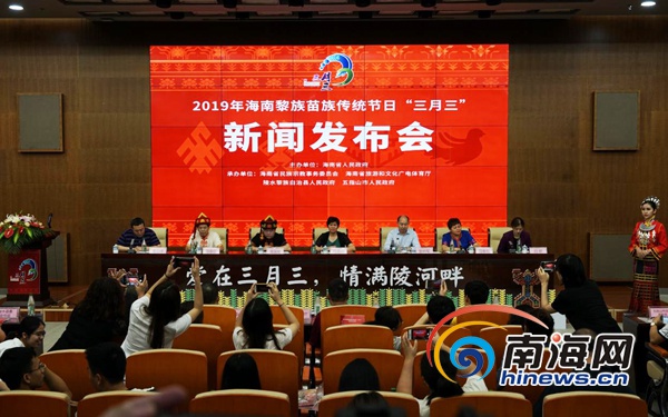 2019年海南黎族苗族傳統(tǒng)節(jié)日“三月三”活動新聞發(fā)布會現(xiàn)場。南海網(wǎng)記者 陳麗娜 攝