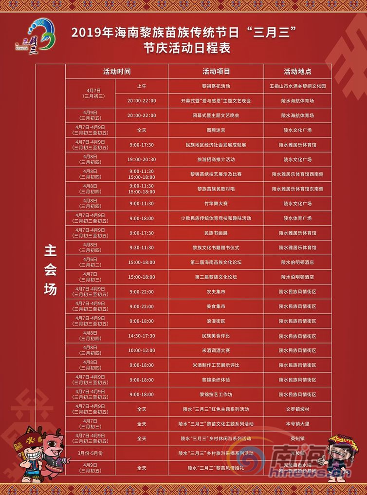2019海南“三月三”主會場日程表