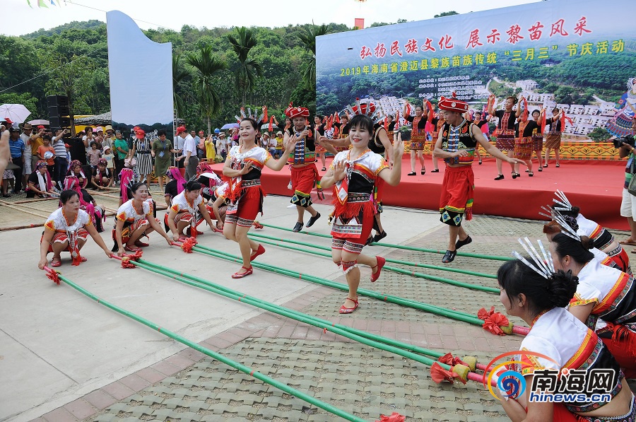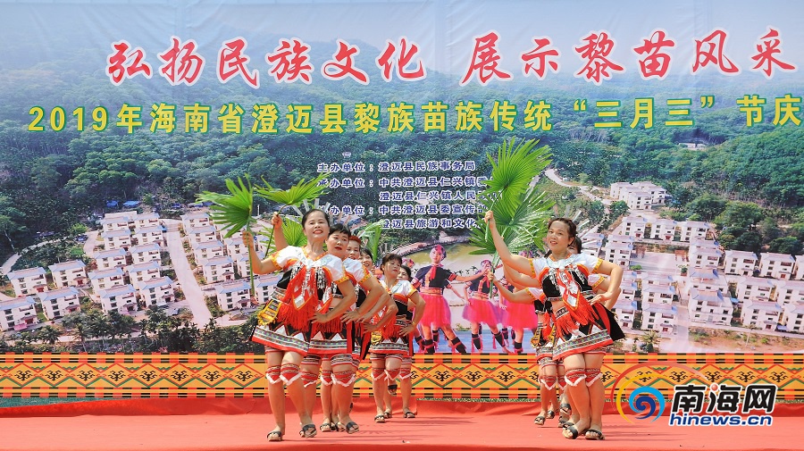 南海網、南海網客戶端澄邁4月7日消息(南海網記者 李昊 通訊員 王家專)4月7日上午,澄邁縣仁興鎮新興苗村人頭攢動、熱鬧非凡,以“弘揚民族文化 展示黎苗風采”為主題的澄邁縣2019年黎族苗族傳統“三月三”節慶活動正在這里舉行,吸引了萬余名游客與當地群眾同慶“三月三”。