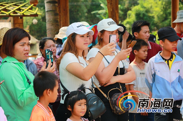 市民游客拿出手機拍攝記錄五指山“三月三”節慶活動的精彩瞬間。南海網記者 葉子青 攝