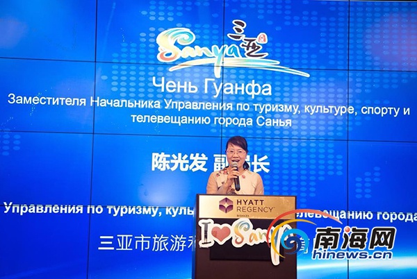 ?三亞市旅游和文化廣電體育局副局長陳光發(fā)現(xiàn)場(chǎng)向吉爾吉斯斯坦游客發(fā)出邀請(qǐng),歡迎來三亞度假旅游。三亞市旅游和文化廣電體育局供圖
