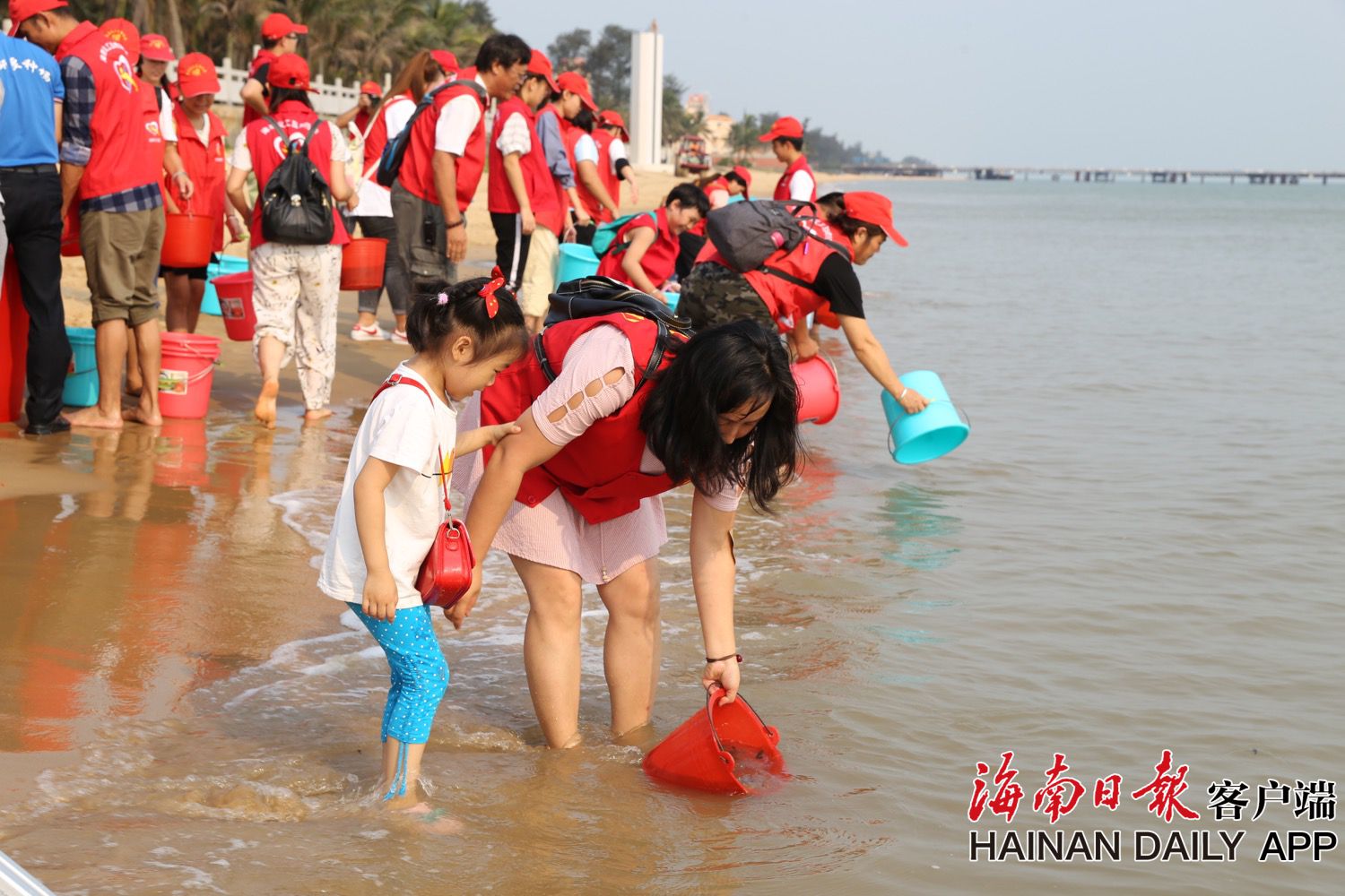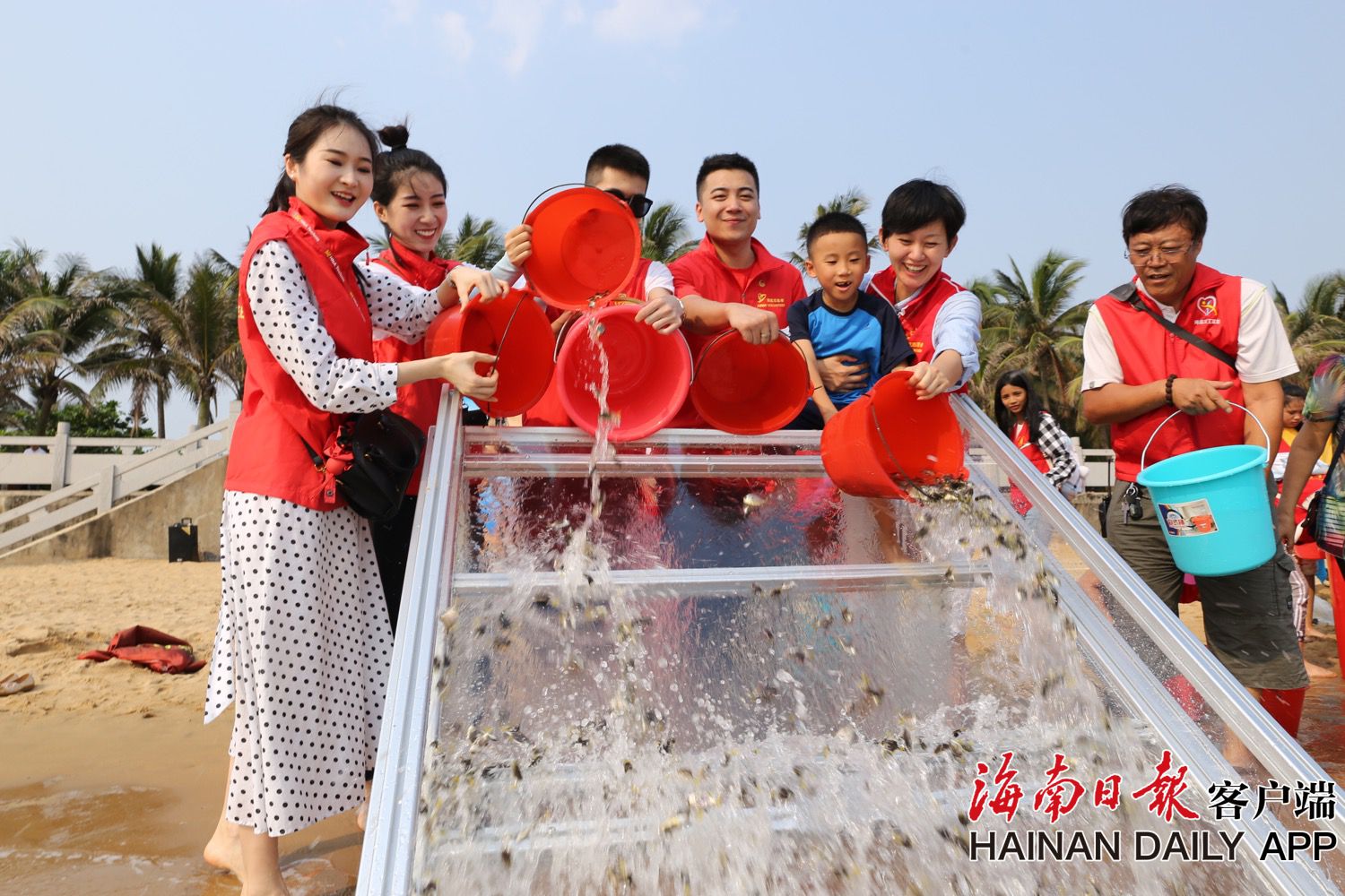 2019年4月20日,在海口市西秀公園海灘,參加“感恩海洋·大愛海南——海航志愿者在行動” 增殖放流主題公益活動的志愿者將兩萬余尾小魚苗陸續放歸大海。 據了解,每年五月至七月期間,是海南的休漁期,也是海洋生物茁壯成長的時期。此次活動將慈善和環保相結合,旨在向社會各界人士發出保護海洋的倡議,維護海洋生態平衡,傳遞海洋環保知識,呼吁大家呵護海洋生物、關注海洋生態。以實際行動踐行“綠水青山就是金山銀山”的綠色發展理念。(據海南日報客戶端|記者 張茂 攝)