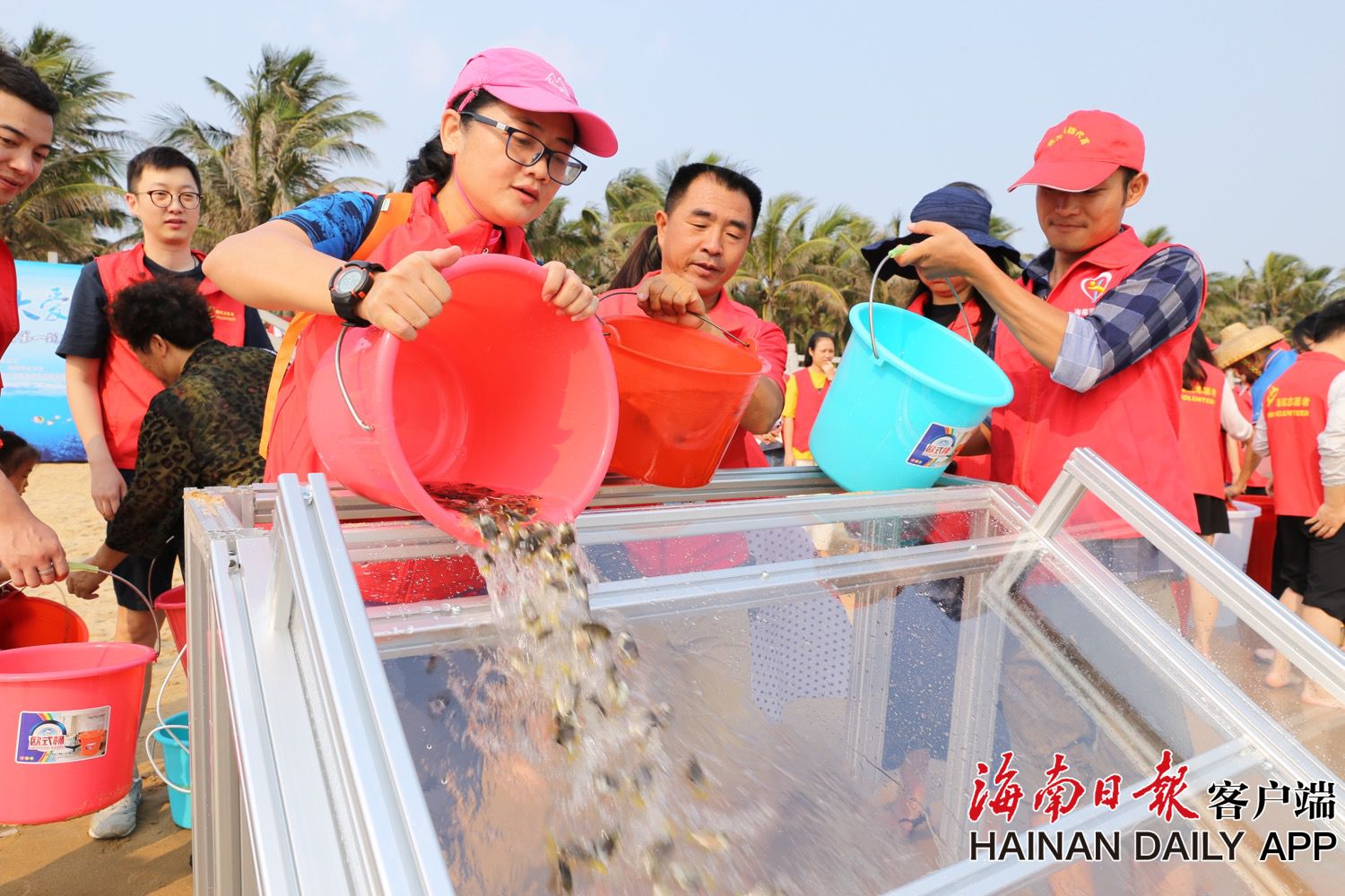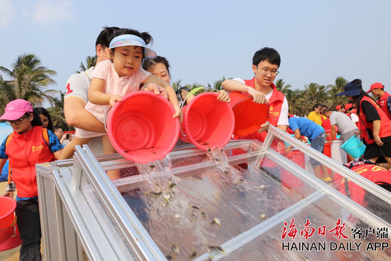 海口志愿者增殖放流2萬尾魚回歸大海
