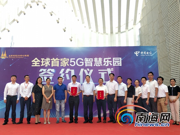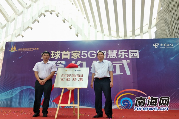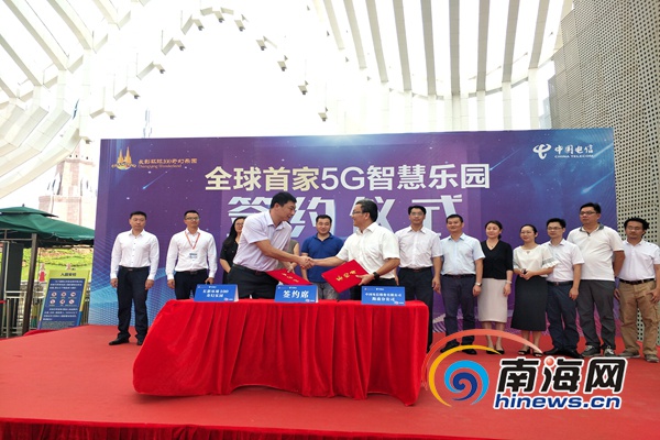 4月20日, 中國電信海南公司、長影環球100奇幻樂園簽約,標志著全球首家5G智慧樂園落地。南海網記者 孫令正攝
