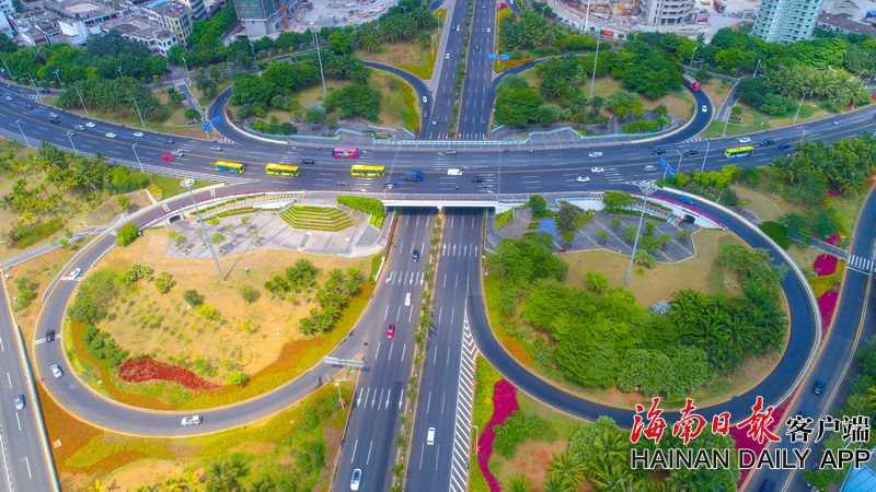 2019年4月28日,高空俯瞰??诔袚杞獬鞘薪煌〒矶鹿δ艿暮8⒔还歉陕肪W,凸顯椰城顏值。海南日報記者 張茂 攝