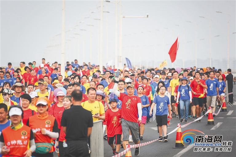 “今天我們沿著活動(dòng)路線慢慢走下來(lái),在健步中細(xì)細(xì)體驗(yàn)了一把當(dāng)?shù)仫L(fēng)情。”專門(mén)從廣東省中山市來(lái)參加健步活動(dòng)的王睿宇興奮地表示,沿途的椰風(fēng)海韻,令人心曠神怡,在大橋上欣賞了南渡江兩岸風(fēng)光,“吹著江風(fēng)讓全身心都得到了放松”。