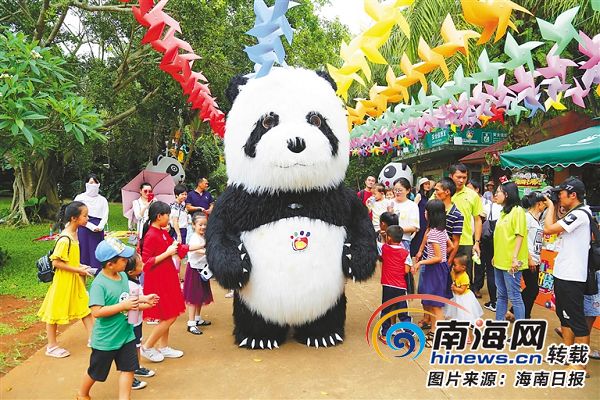 5月2日上午,“五一”小長(zhǎng)假的第二天,海口熱帶野生動(dòng)植物園迎來(lái)客流小高峰,園區(qū)里可愛(ài)的“大熊貓”造型吸引眾多小游客。海南日?qǐng)?bào)記者 張茂 通訊員 熊麗 攝