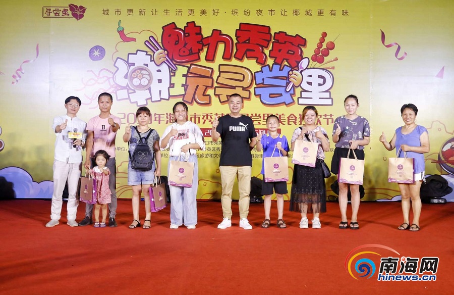 2019尋嘗里美食狂歡節答題獲獎的市民合影。南海網記者 姚皓 攝