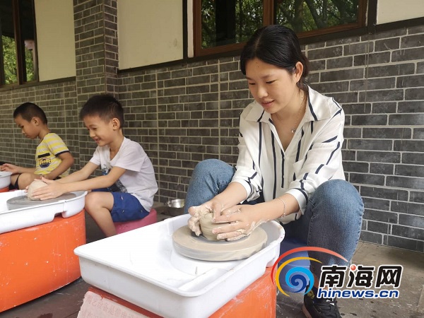 馮塘綠園內(nèi)游客自制土陶。南海網(wǎng)記者 蘇靚 攝