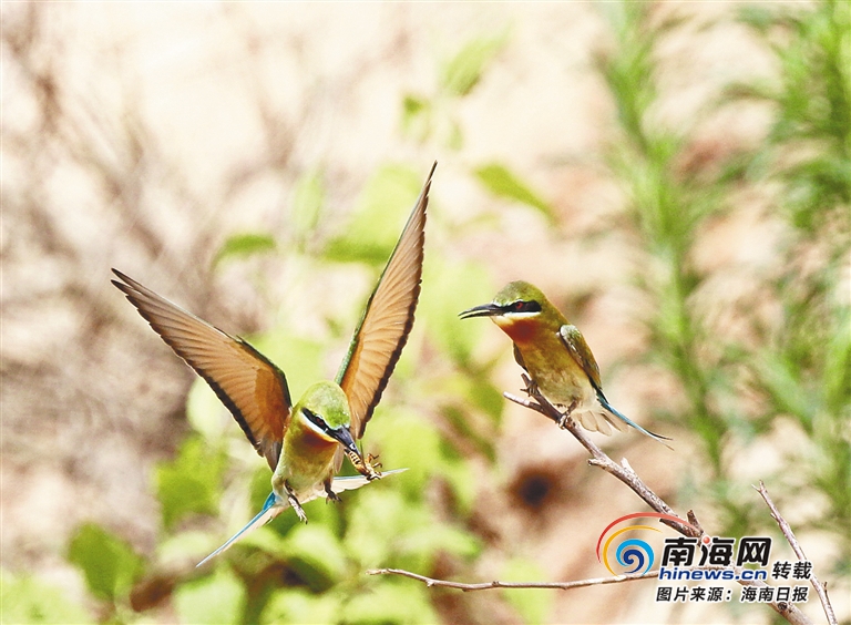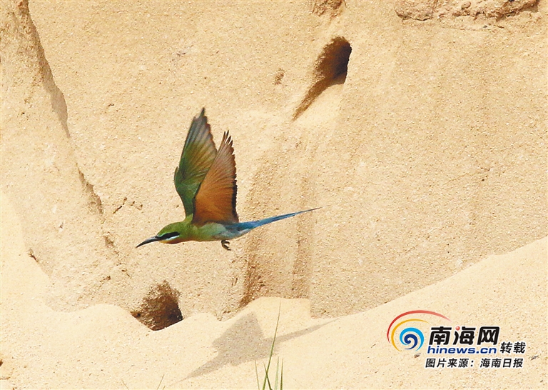 蜂虎羽毛艷麗、色彩斑斕,被譽(yù)為“中國最美的小鳥”,每年的4月至7月是蜂虎繁殖的季節(jié)。2018年5月,海口五源河下游發(fā)現(xiàn)栗喉蜂虎和藍(lán)喉蜂虎,引起社會廣泛關(guān)注。