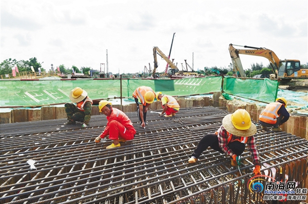近日,在海口市江東新區白駒大道改造及東延長線項目建設現場,工人們揮汗勞碌,隨處可見火熱的施工場景。