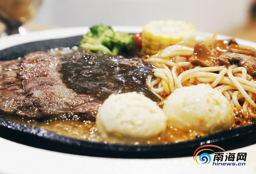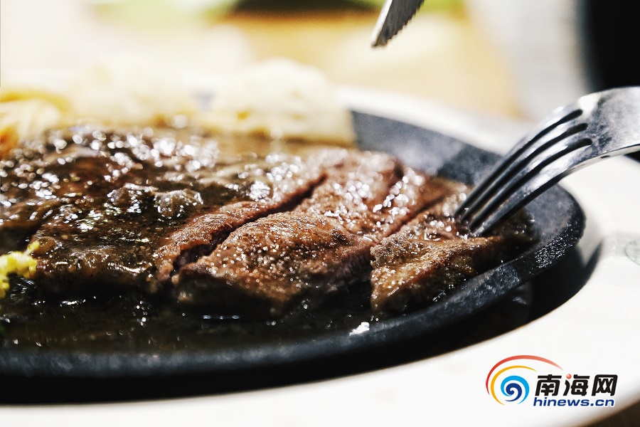 火焰牛排熱氣騰騰又鮮嫩多汁。南海網記者 姚皓 攝