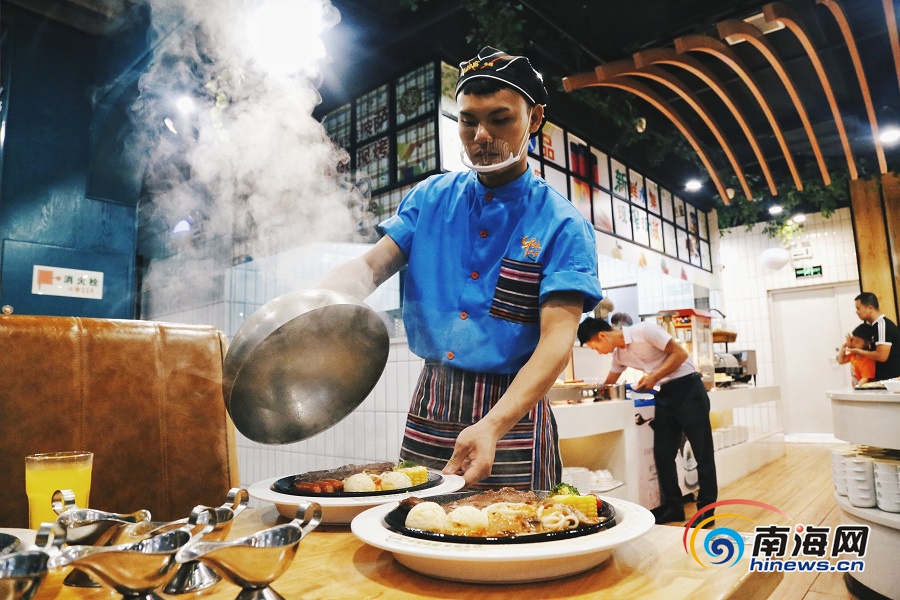 師傅掀開蓋子,牛排的熱氣蒸騰而出。南海網記者 姚皓 攝