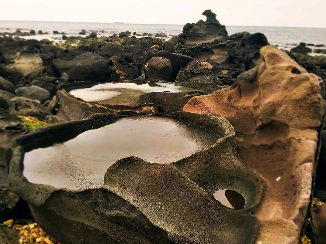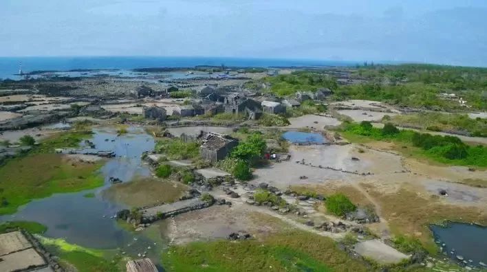 村落的古宅、村路及圍墻,多數是黑石砌筑而成。黑石的村莊緊挨著黑石的鹽田,可謂半村鹽田半村石。開門見大海,出門便是鹽田。星羅棋布的圓形鹽槽,是大海生生不息的胎記,也是村莊永不退色的歷史符號。