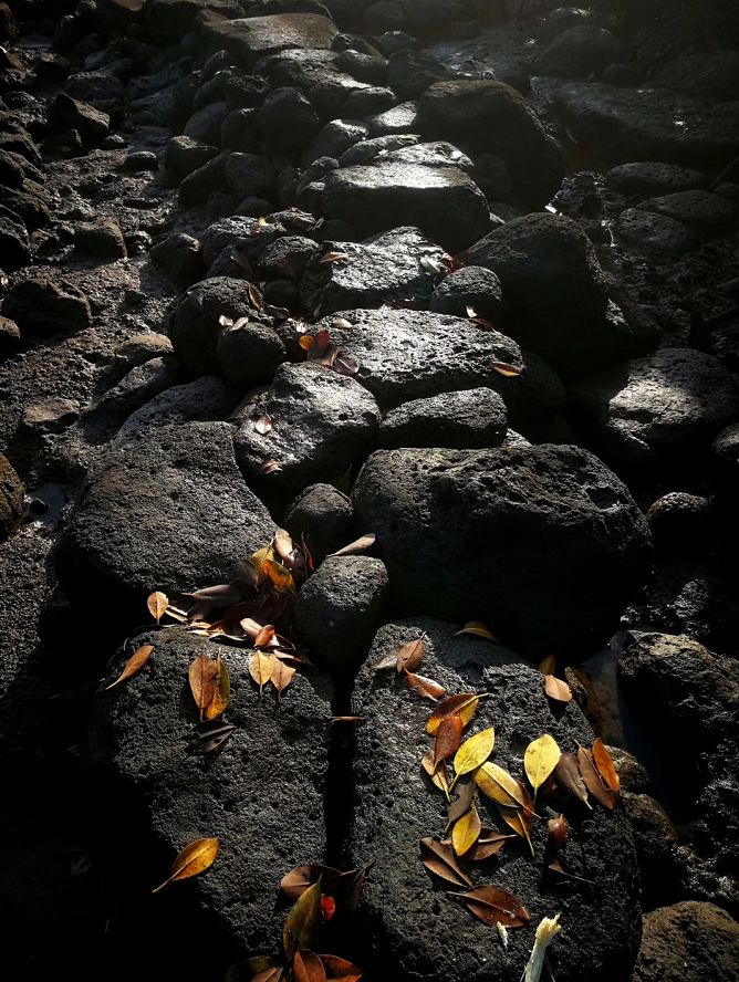海南儋州北部峨蔓鎮有一條長約五公里的黑色火山巖海岸,座落三個并排的村莊:細沙村,鹽丁村,靈返村。三個村莊面朝北部灣大海,岸上黑石嶙峋,如一道天然堤壩擋住洶涌的浪,海水從黑石的夾縫里緩緩地流到岸上。先民用黑石砌成鹽壇,或把黑石鑿成鹽槽,鋪設成海岸鹽田,開始了曬鹽為生之路。1200多年來,三個村莊的鹽田保護完整,曬鹽技藝傳承至今,鹽味甚濃,古風猶存。