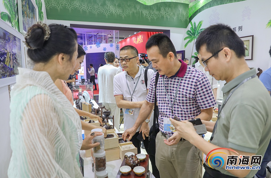 本次參展的海南企業(yè)近60家約240人,省市縣有關(guān)單位約160人,合計(jì)約400人參展。在1號(hào)館的海南展館區(qū)域,以產(chǎn)品及項(xiàng)目形式展示的企業(yè)35家,其中,產(chǎn)品展示企業(yè)13家,共展示陶瓷、貝瓷、貝雕、椰雕、木雕、紙板彩雕、黃花梨、沉香、黎錦、黎族銀飾、景泰藍(lán)、海島兄弟等12個(gè)系列文化創(chuàng)意產(chǎn)品。項(xiàng)目展示企業(yè)22家,展示項(xiàng)目31個(gè),包括文化旅游項(xiàng)目13個(gè)、影視項(xiàng)目3個(gè)、演藝項(xiàng)目6個(gè)、實(shí)體書(shū)店項(xiàng)目1個(gè)、投融資項(xiàng)目8個(gè)。