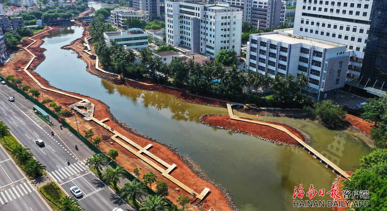 位于海甸島中部的鴨尾溪,向東和南渡江相連,西接五西路排洪溝,全長2.3km,是海甸島橫溝河左岸分支之一。當天,記者在現場看到,原來加蓋在鴨尾溪兩岸的違建均被清理一空,河道內水清見底。根據水流向建設的親水棧道已基本完工,幾臺大型挖掘機正在河灘上緊張作業。