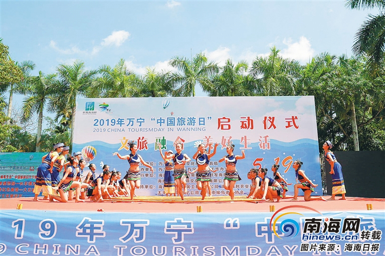 2019年萬寧市“中國旅游日”活動啟動儀式現(xiàn)場的特色歌舞表演。