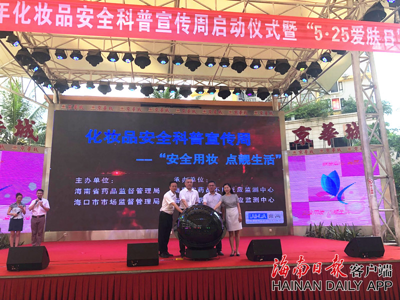 5月22日上午,以“安全用妝·點靚生活”“健康海南 美麗人生”為主題的海南化妝品安全科普宣傳周暨“5.25愛膚日”系列活動在海口京華城啟動,來自監管部門和化妝品生產經營企業代表等約430人參加了啟動儀式。