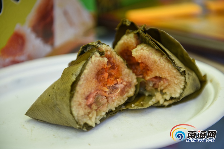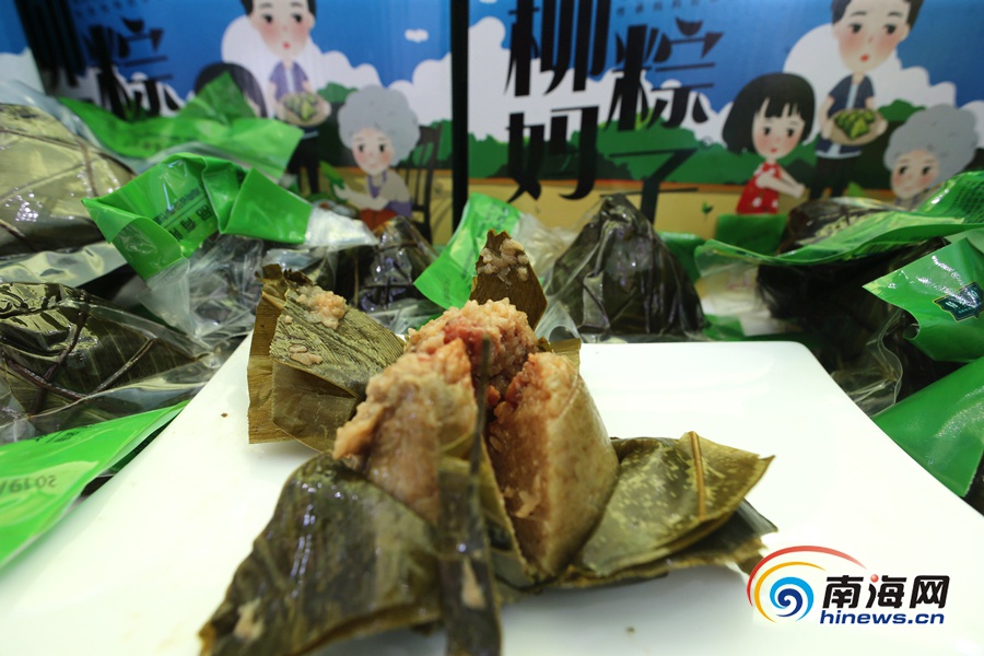 粽子企業正在展示自己生產的粽子。 南海網記者 陳望 攝