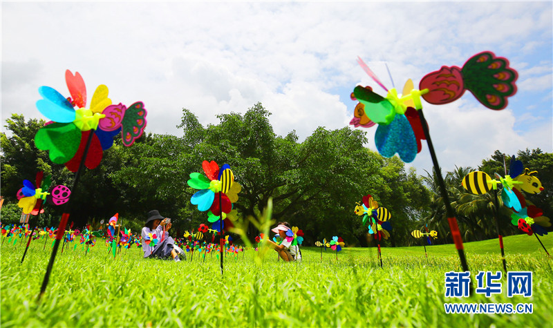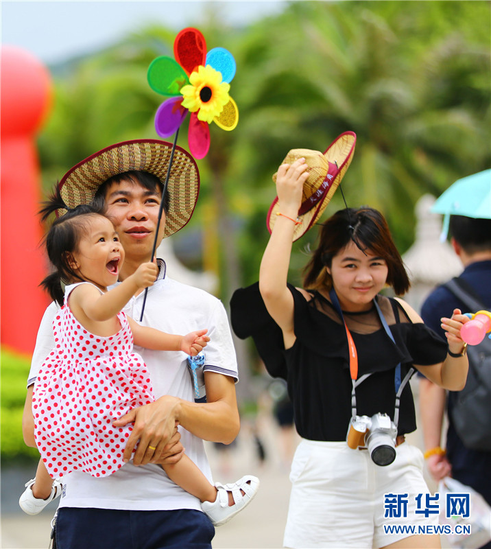 資料圖:家長帶孩子在三亞南山景區(qū)風車谷上游玩。新華網(wǎng)發(fā)
