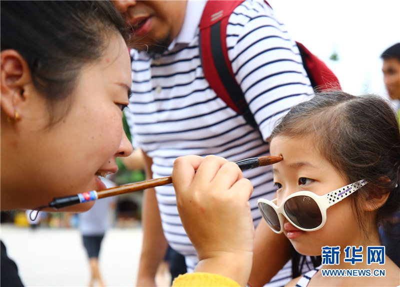 資料圖:端午假期,南山景區(qū)工作人員為小朋友點雄黃。新華網(wǎng)發(fā)