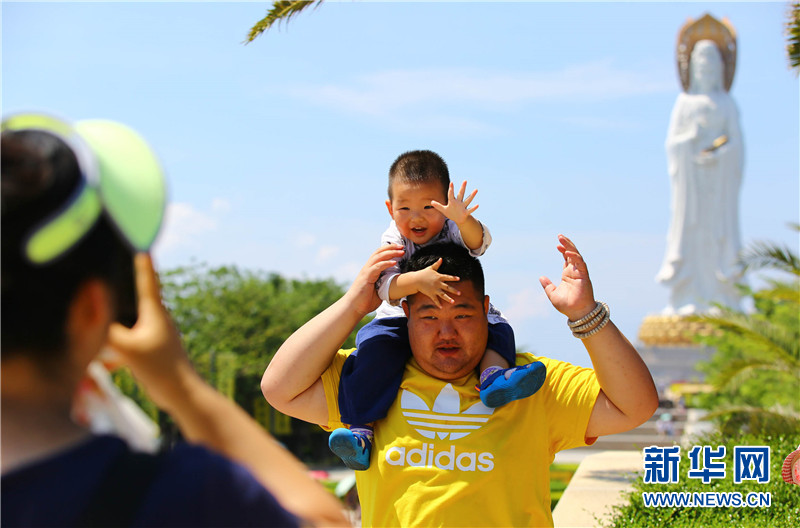 資料圖:家長帶孩子在三亞南山景區(qū)游覽。新華網(wǎng)發(fā)