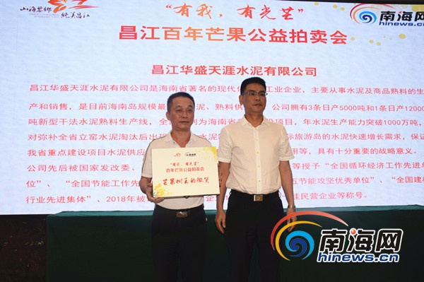 “芒果樹王的微笑”的百年芒果禮盒被昌江華盛天涯水泥有限公司競拍成功。南海網記者 劉麗萍 攝