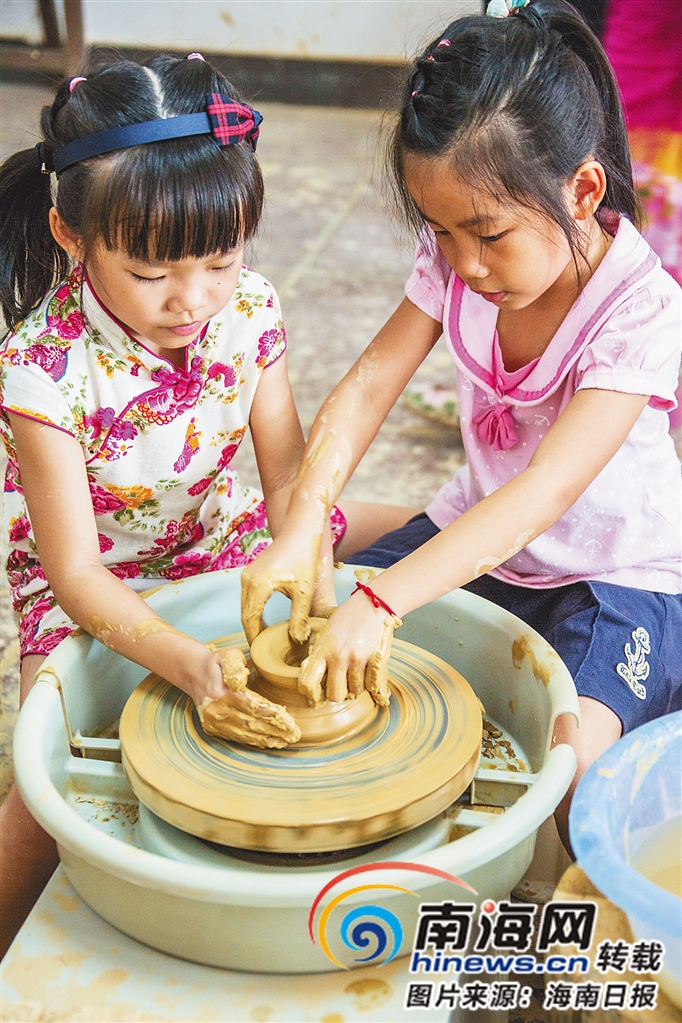 福山咖啡風情小鎮,孩子們在體驗制陶。海南日報記者 李幸璜 攝