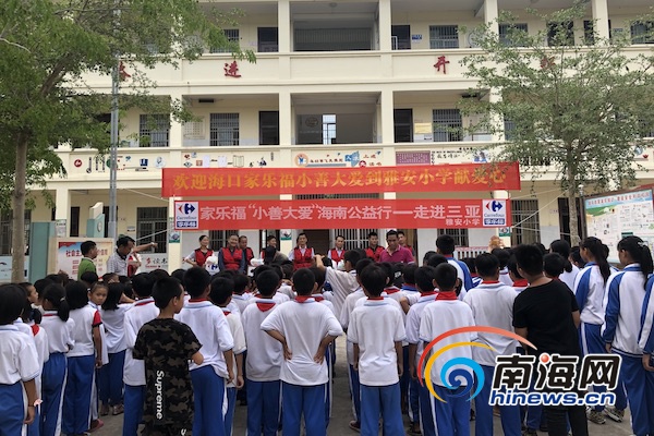 5月30日下午,由海口家樂福發(fā)起的“小善大愛”海南公益活動第十七站走進三亞市崖州區(qū)雅安小學(xué)。 南海網(wǎng)記者 劉子榕攝