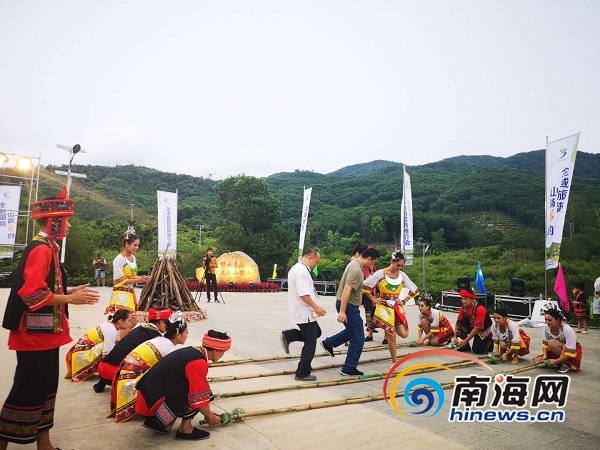 活動現場熱鬧非凡,黎族的阿妹、阿哥穿著獨具特色的民族服飾,在歡快的節奏下,熱情地邀請嘉賓及游客體驗竹竿舞,濃郁的節日氣氛感染了不少圍觀村民駐足拍照?!熬镁貌灰娋镁靡姡镁靡娏烁胍姟?,在蜿蜒的河道上,黎家阿哥、阿妹劃著竹筏縱情高歌,將黎族村寨的美麗故事唱出來,傳遞著樂東人對生活的美好愿景。